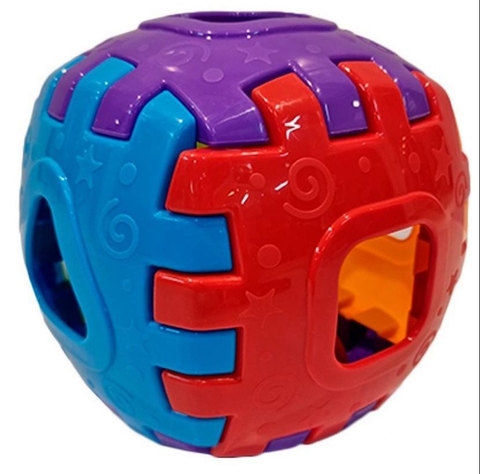 É formado por peças coloridas desmontáveis. A criança pode montar e desmontar o cubo e criar novas brincadeiras. Vem com formas geométricas em todos os lados para encaixar e as peças de formato correspondente.